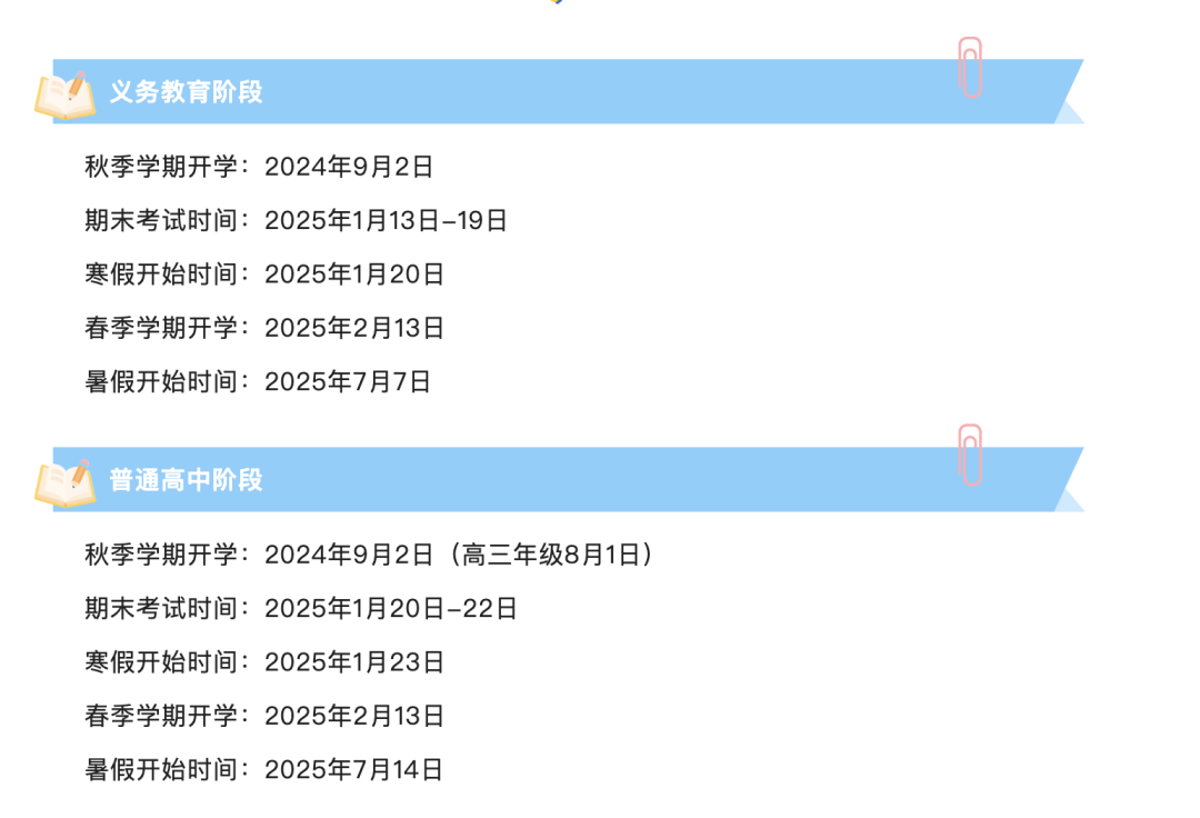 广州市2024-2025学年校历 图/“广州教育”公众号 对比近三年来广州市义务教育学校的寒假时长可以看出,2022-2023、2023-2024学年为29天,本学年寒假确有缩短。