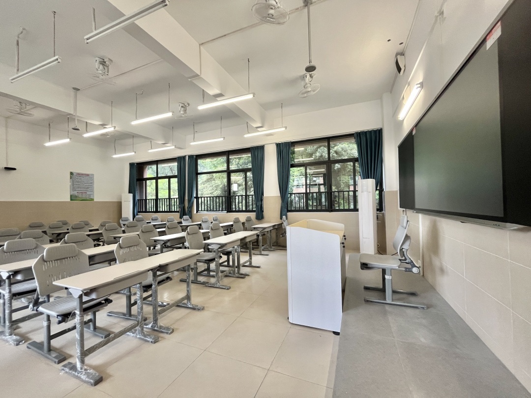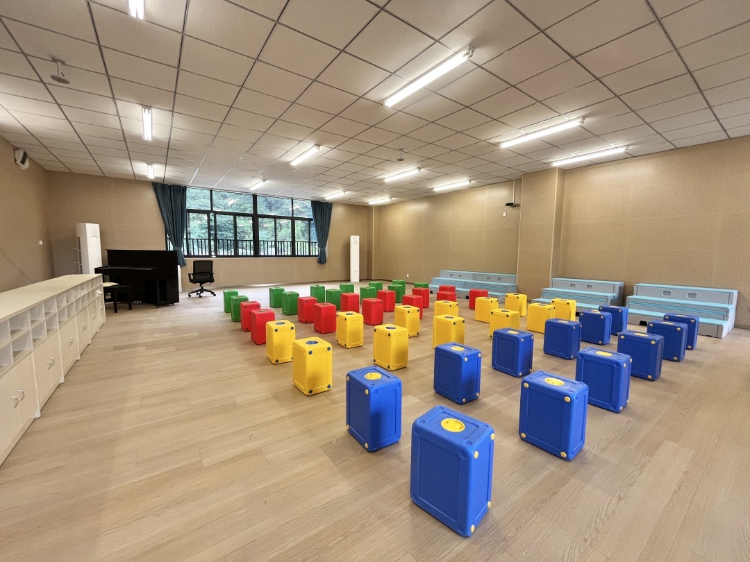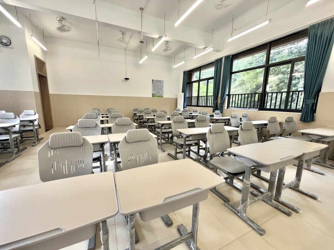 该校建有教学楼、食堂、篮球场、足球场,设有美术室、音乐室、舞蹈室、科学室、图书室等功能场室。其中,课室内的桌椅可根据学生的身高调节高度,满足一到六年级学生需求。学校提供午餐、午托服务,学生用椅经调节后可变为“午休椅”,供学生午休。