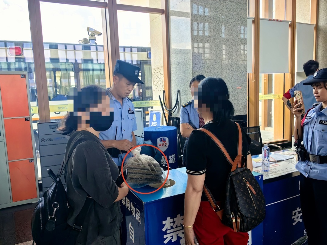 据怀化铁路警方介绍,8月29日上午11时许,龙山北站安检人员对进站旅客的行李过机检查时,发现一个行李中有疑似马蜂窝形状的物品。车站民警和安检员立即对可疑的行李进行开包检查,果然发现包内一个塑料袋里装有大量马蜂窝,且还有马蜂在里面爬行。