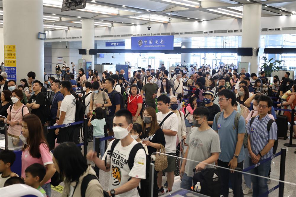 港珠澳大桥边检站站长陈发球介绍,随着广东省内大交通升级,港珠澳大桥、深中通道串联起粤港澳大湾区城市群,叠加港澳车辆“北上”,为湾区人开启了文旅新玩法、新体验,激发了湾区城市互游新动能,口岸港澳游客较去年同期增长超过55.36%。