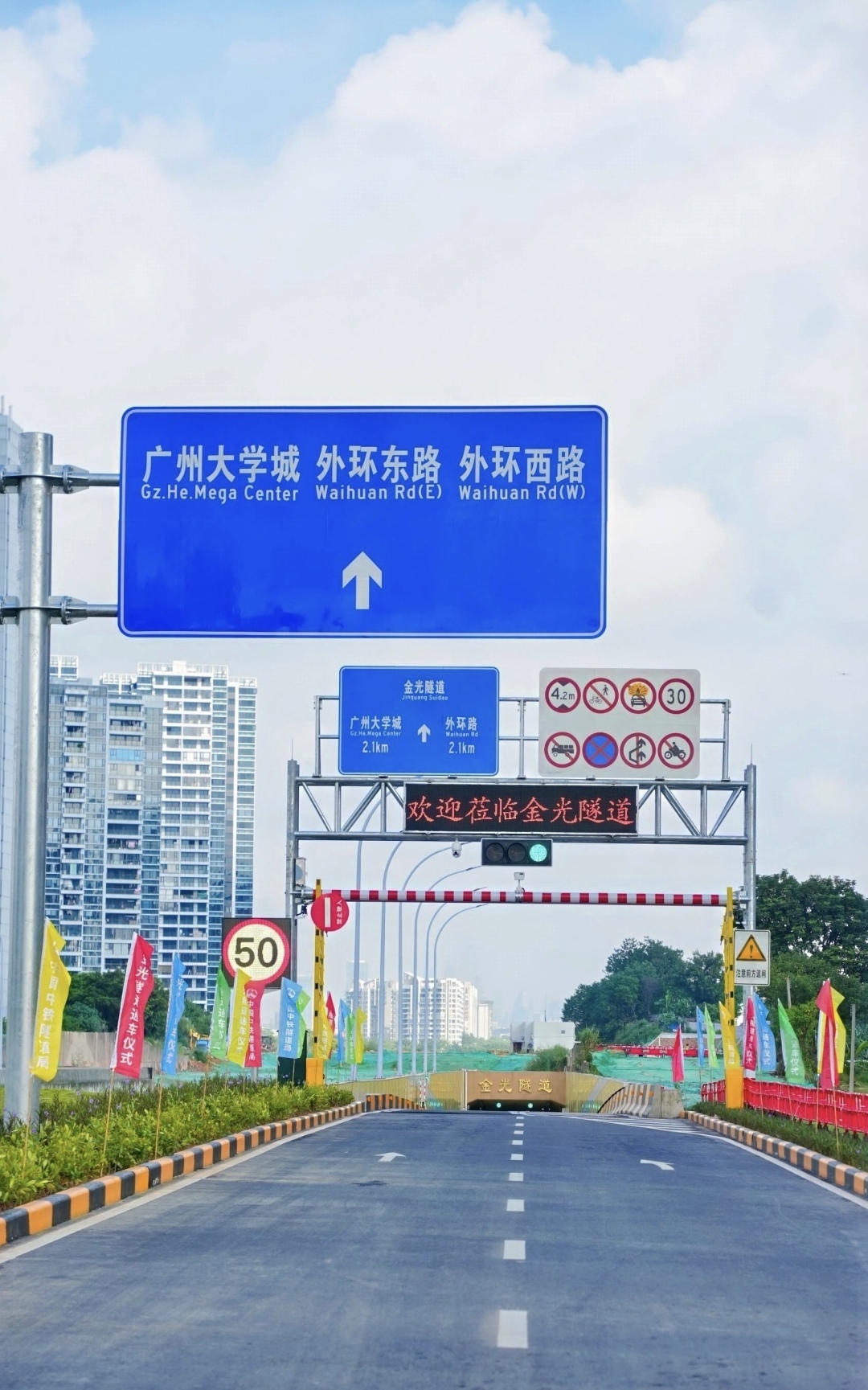 金光隧道作为连接广州大学城一期、二期和广州国际科技创新城核心区的交通网络的“关键一横”,不仅成为打通连接珠江两岸的交通大动脉,也连接着一个充满想象空间的未来产业发展集群,有助于发挥广州大学城的“智核”作用,为广州及粤港澳大湾区注入澎湃动能。