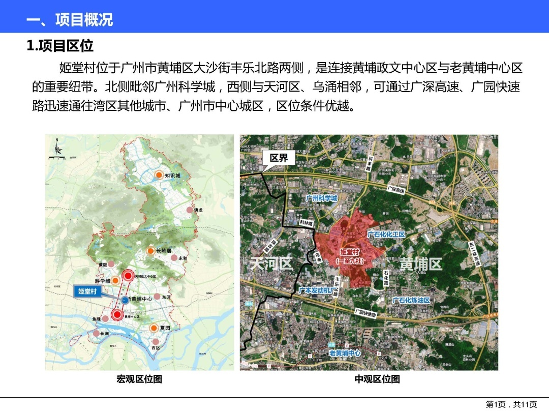 姬堂村位于广州科学城与广州海丝城的中间地带,北至科学城,南至广园快速路,东至石化路,西至乌涌西支涌。该项目已列入《广州市2024年城市更新项目年度计划》。