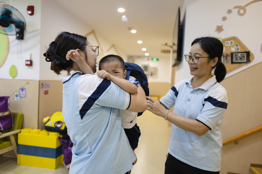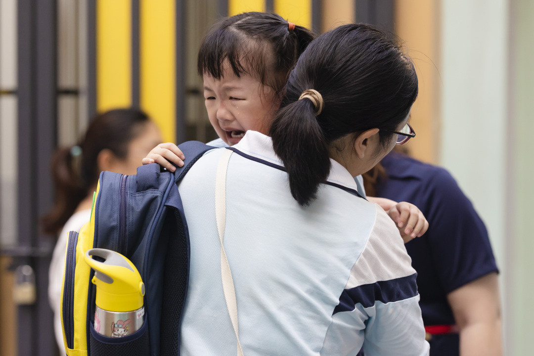 开学季,幼儿园又出现“小泪包”!在广州市海珠区万松园幼儿园,孩子们在家长的护送下返园。不少新进入幼儿园的孩子在校门口与家长“难舍难分”,哭成“泪人”,让家长哭笑不得,又心疼孩子又觉得好笑。