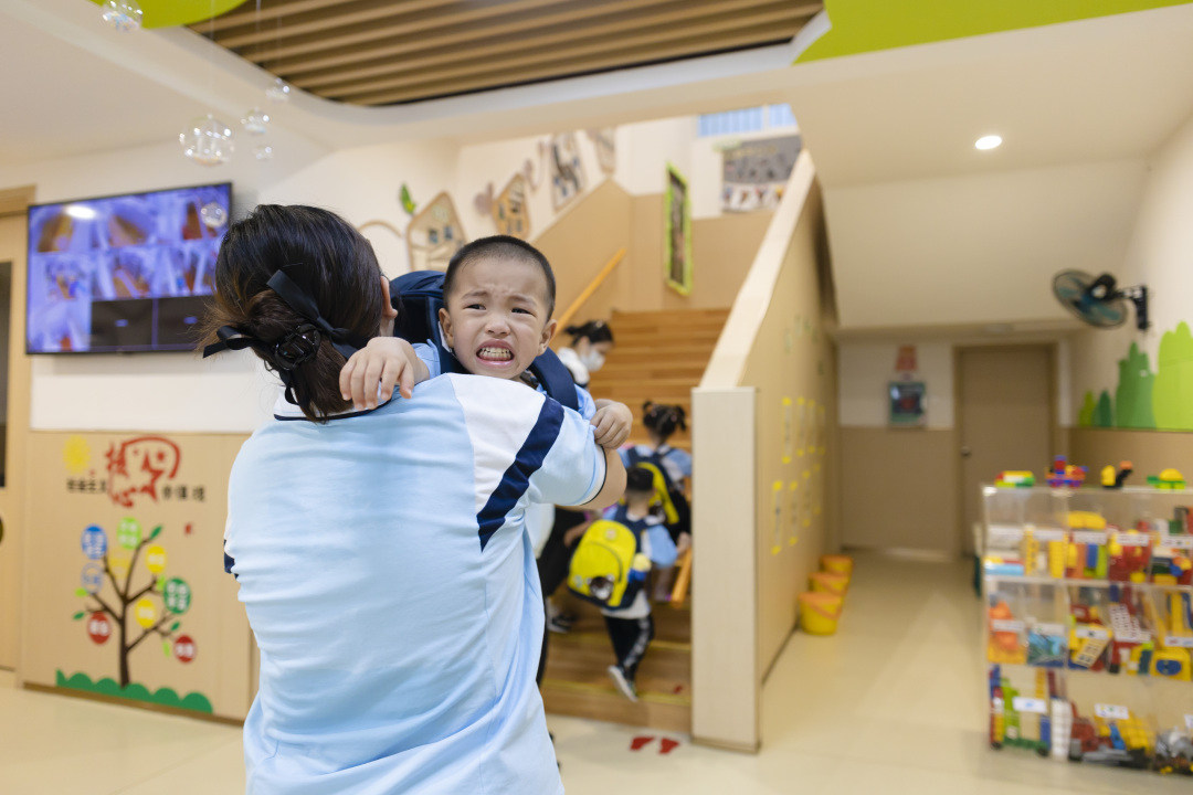 万松园幼儿园的陈老师介绍,一般新生都会出现分离焦虑的现象。面对哭成“泪人”的孩子们,老师会耐心安抚,轻轻抱一抱孩子,让孩子感到关爱和安全感。老师也会带领孩子们开展一些有趣的活动,比如唱歌、讲故事,转移孩子的注意力,让他们暂时忘记对家长的思念,和老师之间建立信任关系。一般而言,新生的分离焦虑在入园一周后会逐渐好转,差不多一个月内就可以适应幼儿园的生活。