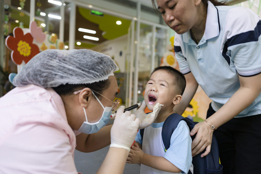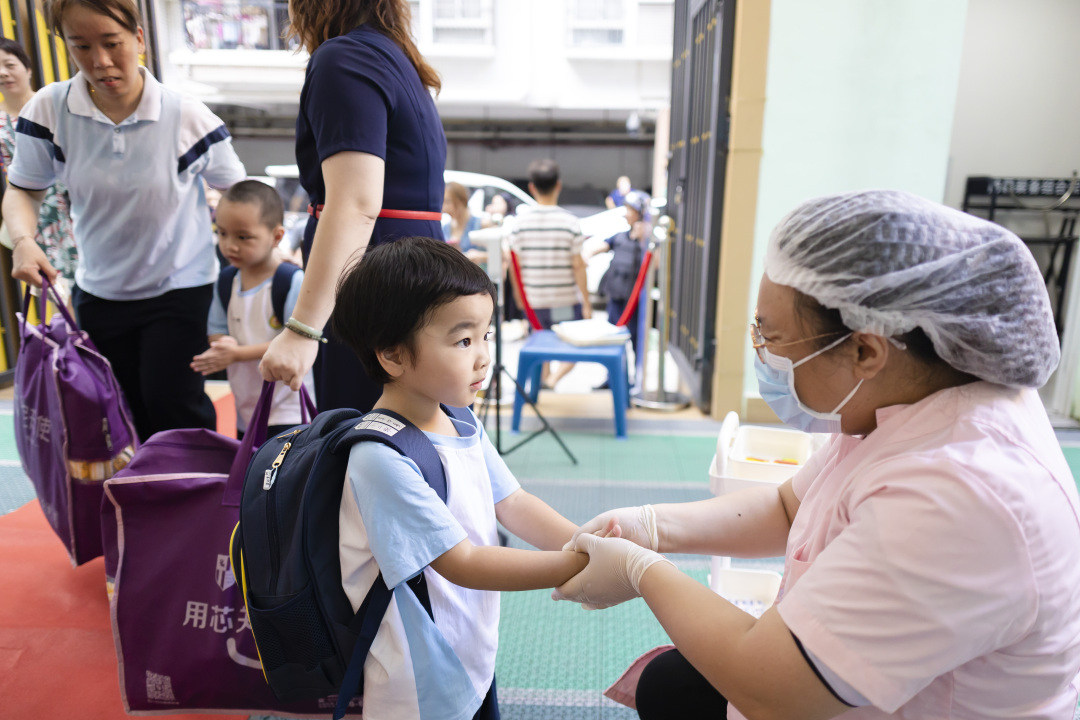 孩子们进行入园前的检查