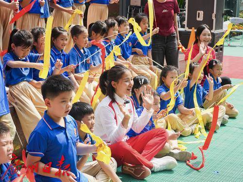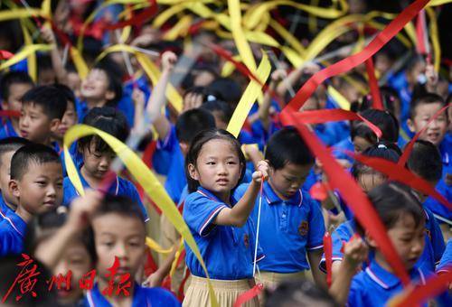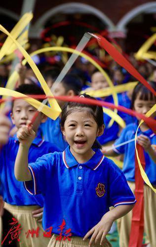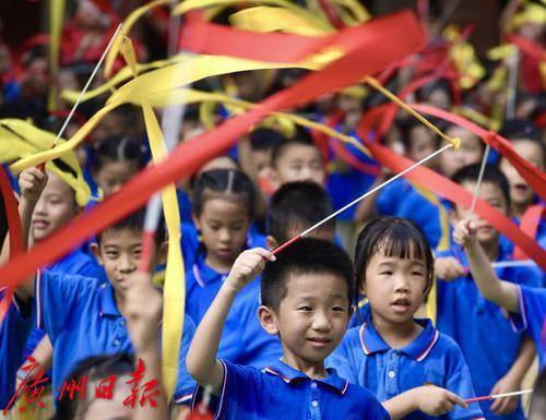 孩子们舞动着丝带仿佛编织着新学期的美好梦想。