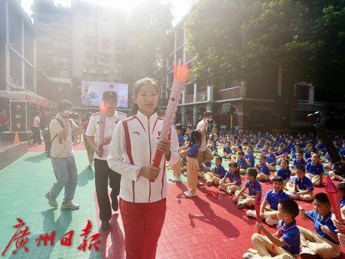 9月2日开学日,在越秀区小北路小学,一场仪式感满满的火炬传递在校内外举行。巴黎奥运会跆拳道女子49公斤级亚军获得者郭清参加开学火炬传递 。