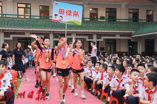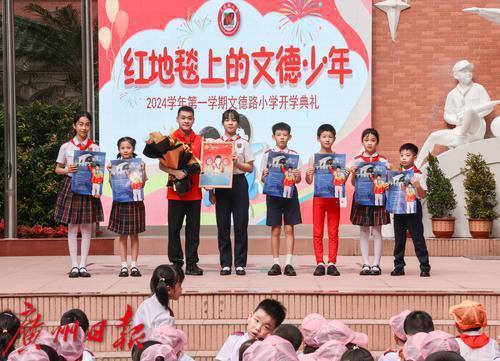 秋风送爽,金阳洒满古老的绿榕,在这温馨而明媚的晨光中,文德路小学迎来新学年的第一天。以“红地毯上的文德少年”为主题的开学典礼,奏响了学子们新学年逐梦的号角。 迎着晨光,同学们踏进校门。一块专设的红地毯让大家感受到扑面而来的热烈气氛,也让文德学子在到校的瞬间拥有了踏上红毯的“高光”体验,这是学校为同学们准备的开学“彩蛋”,寓意“每一位孩子都是闪闪发光的文德少年”。