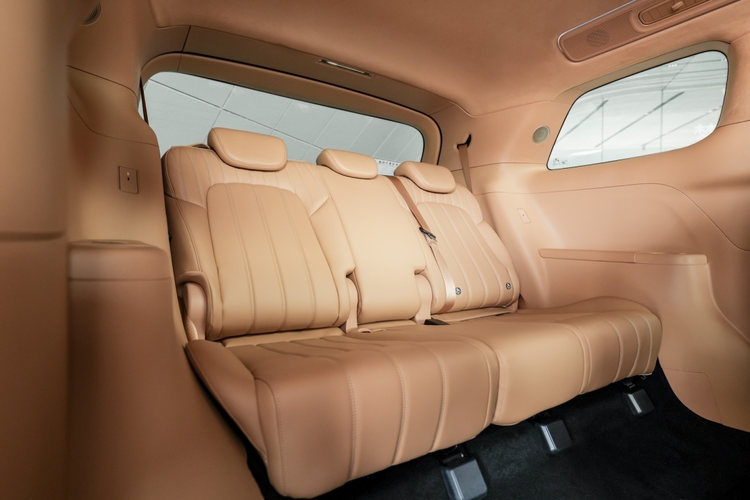 当然,乘坐舒适感依然是MPV最大的核心。全新岚图梦想家的设计实现实现“三排豪华平权”,第三排的三个座位均支持坐垫和靠背区域座椅加热,加高靠背高度,提高肩部承托力,让乘坐更自然舒展。而且全新岚图梦想家通过结构设计,让车内7㎡的移动大平层可以从容规划出 “三室两厅”:副驾可通过副驾屏刷剧;第二排的SPA级零重力座椅与13L双门冷暖智能冰箱,构成轻松的“客厅”;第三排最大靠背角度可调 122°方便小憩。