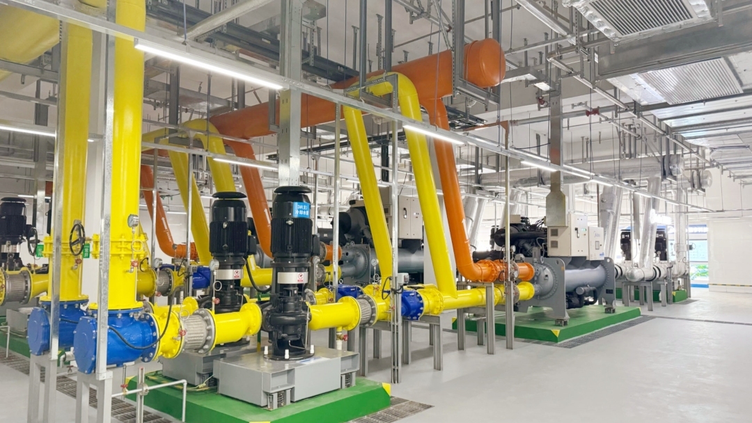 此外,主机三大变频直驱离心机组同样“黑科技”满满,例如采用全降膜蒸发式的蒸发器,基本可以实现蒸发器内“零”液位,对比传统的满液式、混合降膜式蒸发器,可减少大量的制冷剂充注量,经济环保。值得一提的是,除了主机端采用高效设备,水泵、管网、冷却塔等设备的设计也提升了设备的高效、节能运维。例如,冷冻泵及冷却泵均采用了立式双吸泵形式,相比常规端吸泵效率更高,确保对流量和扬程的精准控制等等。