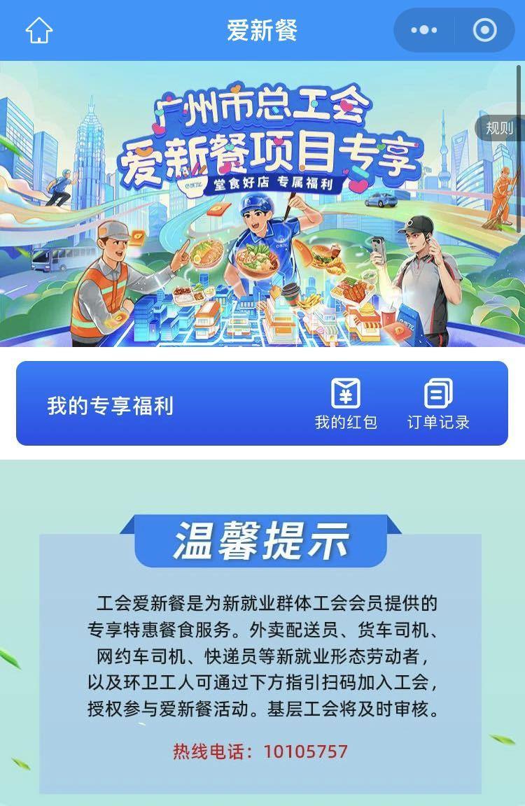 符合条件的新业态从业者关注“广州工会”微信公众号,即可进入“工会爱新餐”活动专区享受“爱新餐”服务。尚未加入工会的新就业形态劳动者须先进入“广东新业态入会”小程序,注册成为广州市新就业形态劳动者工会会员,才可享受“爱新餐”服务。