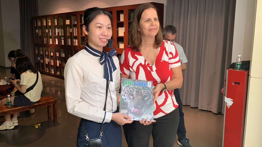 在参观结束之际,发生了一段小插曲,巴西Plurale杂志总编辑索尼娅·阿拉里皮将自家最新一期杂志赠送给十三行博物馆。她表示,很高兴参加这次广州之旅,了解了广州的历史文化和城市面貌,她想在领略中国文化的同时,也将巴西当地文化传播到中国,让中国人民也能了解、认识巴西的文化和魅力。