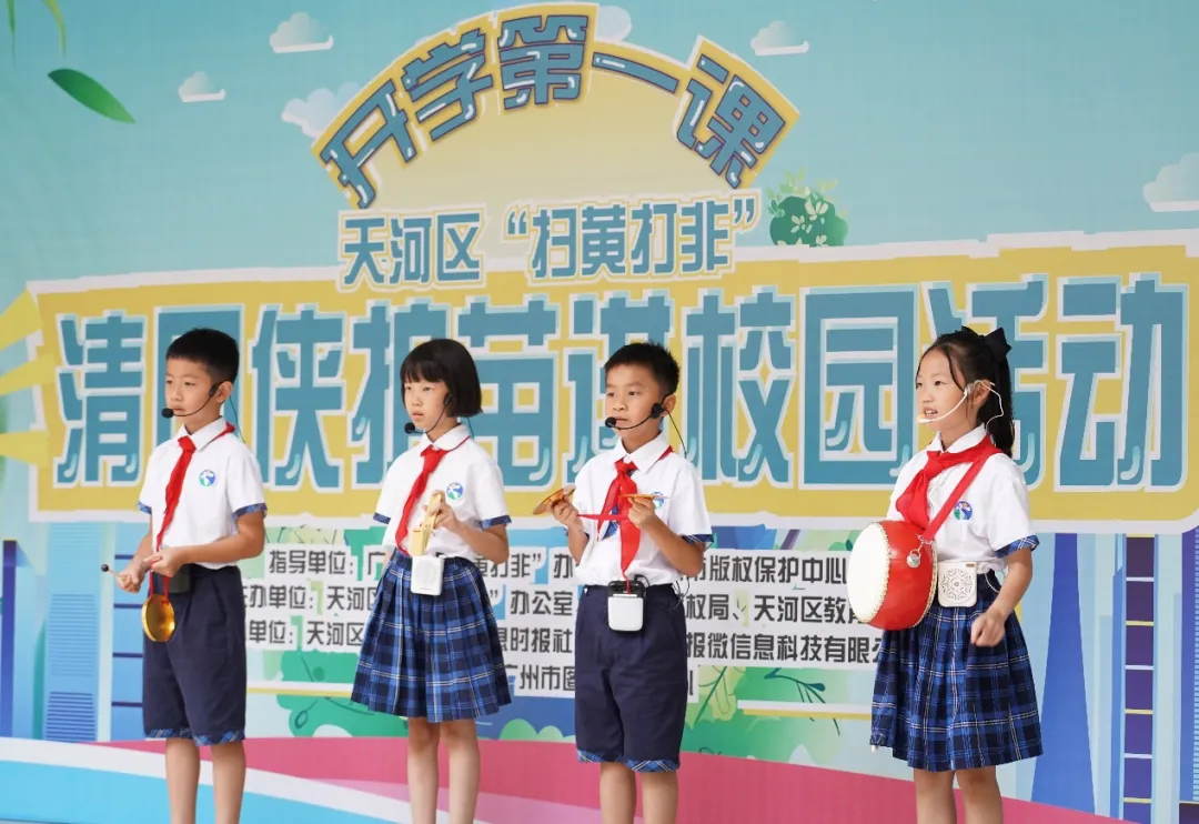 近日,天河区在冼村小学开展“开学第一课——‘扫黄打非’清风侠护苗进校园”活动,系列生动有趣的宣讲节目向青少年传递尊重知识、守护文化的理念,开启了同学们新学期的学习之旅。此次活动由天河区“扫黄打非”办公室、天河区版权局、天河区教育局主办,天河区冼村小学、信息时报社、广州市时报微信息科技有限公司承办,广州市图批创新中心支持。