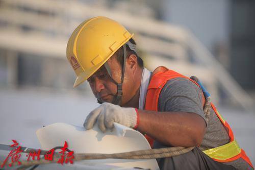 因为没法晚上施工,工人们只能选择早晚没那么热的时段进行施工。