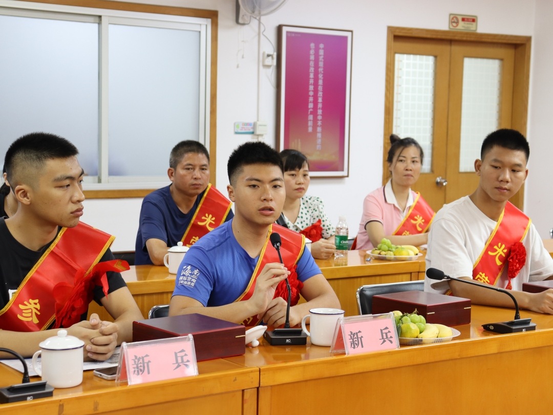 新兵代表小刘、家长代表黄先生分别发言,小刘表示将珍惜难得的机会,以饱满的热情和昂扬的斗志投入到役前训练中,努力学习军事技能,提高自身素质,为祖国的国防事业贡献自己的力量。