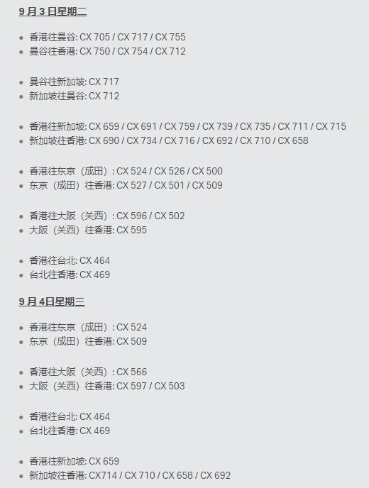因发现部分空客SE A350飞机发动机部件故障后的停飞检查,国泰航空9月3日取消了几乎所有从香港飞往新加坡的定期航班。国泰航空网站显示,该航司9月3日的9个香港-新加坡(包括途经新加坡)航班中有8个被取消,唯一仍将起飞的航班是下午的一架波音777客机。与此同时,从香港飞往曼谷以及东京的航班也有近一半被取消。当天仍在运营的航班中没有一架A350。