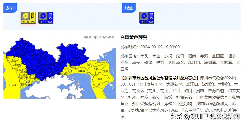 深圳市气象台于9月5日19时将