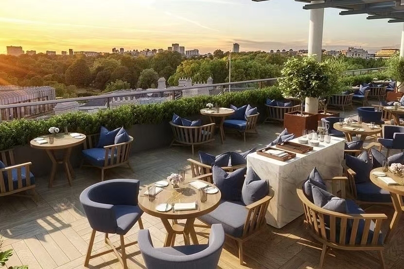 值得一提的是,酒店楼顶餐厅布鲁克兰(Brooklands by Claude Bosi)在开业仅四个月内便荣获米其林二星,也是伦敦感受米其林星级美食的热门去处。这家由米其林星级厨师长克劳德·博西(Claude Bosi)掌舵的餐厅主打现代英国美馔,在以英国航空和赛车运动主题的餐厅里,还可俯瞰伦敦圣保罗以至巴特西区一带的天际线胜景。一旁的布鲁克兰酒吧既是酒吧,又像是画廊,是一个令人一眼难忘的屋顶酒吧,从酒吧的落地窗可以俯瞰伦敦极具标志性的地标性建筑。