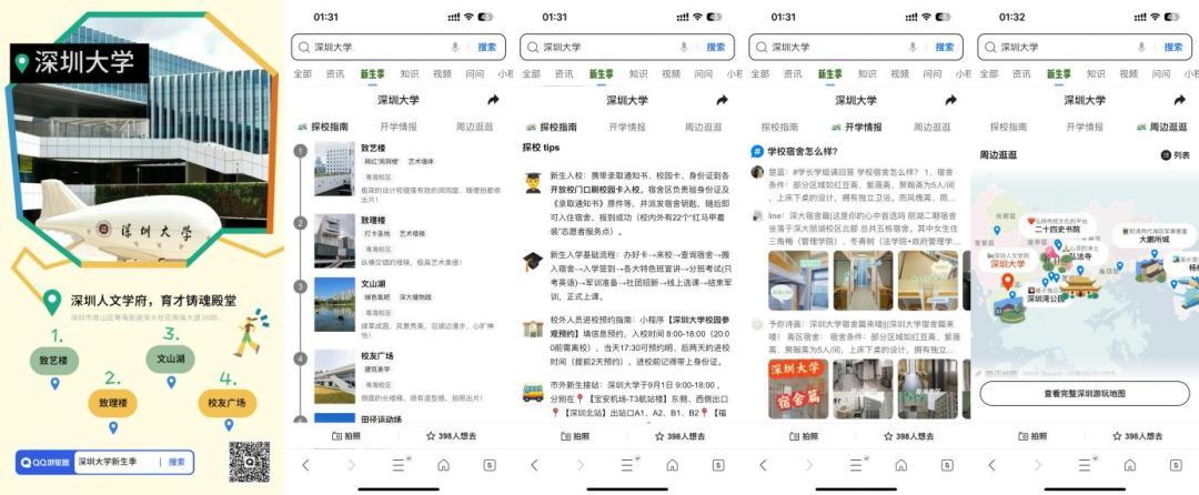 图注:用户在QQ浏览器App搜索“高校名称”如深圳大学,选择带“新生季”词条即可进入