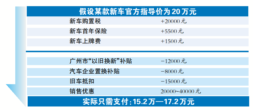 如果按照9月1日实施的广州“以旧换新”方案,15万—25万元的燃油车补贴从4000元提高到1.2万元,也就是说,消费者还可以再多省8000元。