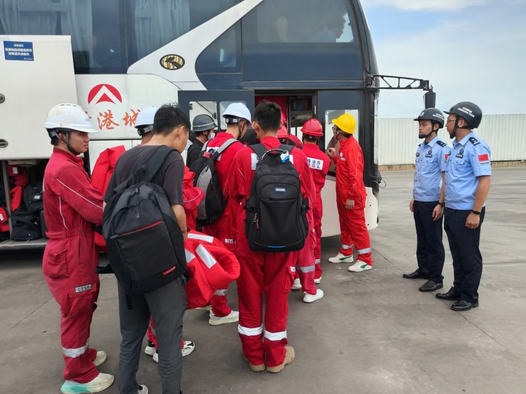 为有效应对台风挑战,湛江边检站大幅增派警力,24小时执勤巡检,确保所有需回港避风的船舶能够迅速办理通关手续,安全进港避风。截至9月6日上午9时,该站已累计出动警力90余人次,对码头关键区域进行了3次全面巡查,高效保障油田群作业平台451名工作人员安全撤离回港,并与码头工人紧密合作,对10余个重要作业设施进行了加固处理,有效保障了基础设施的安全稳固。