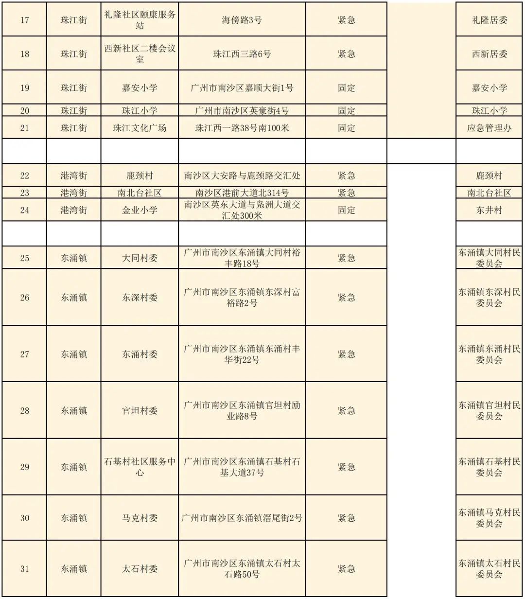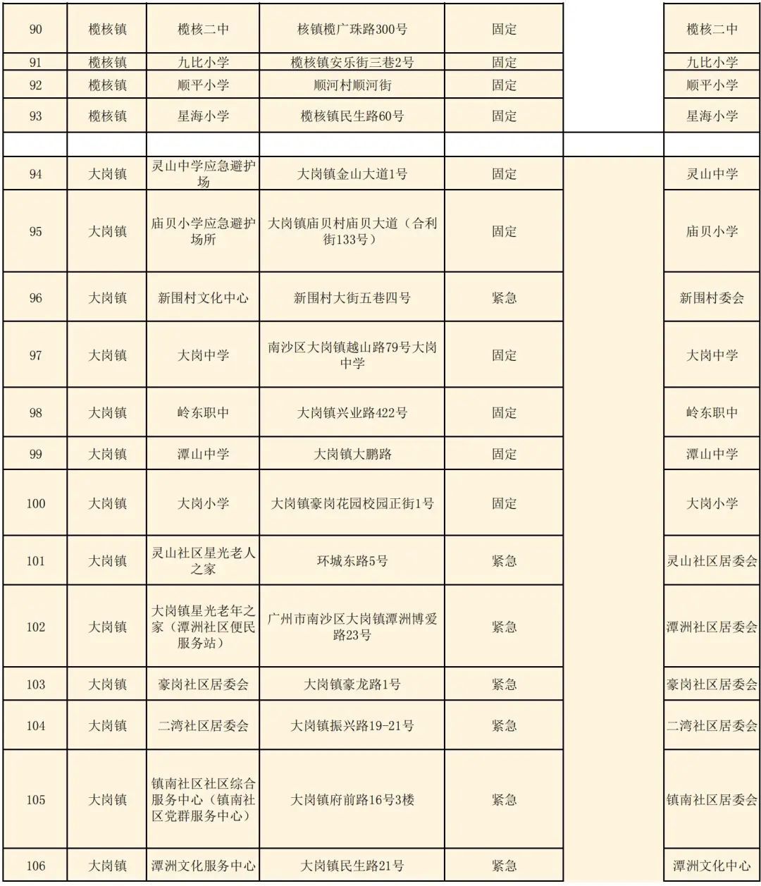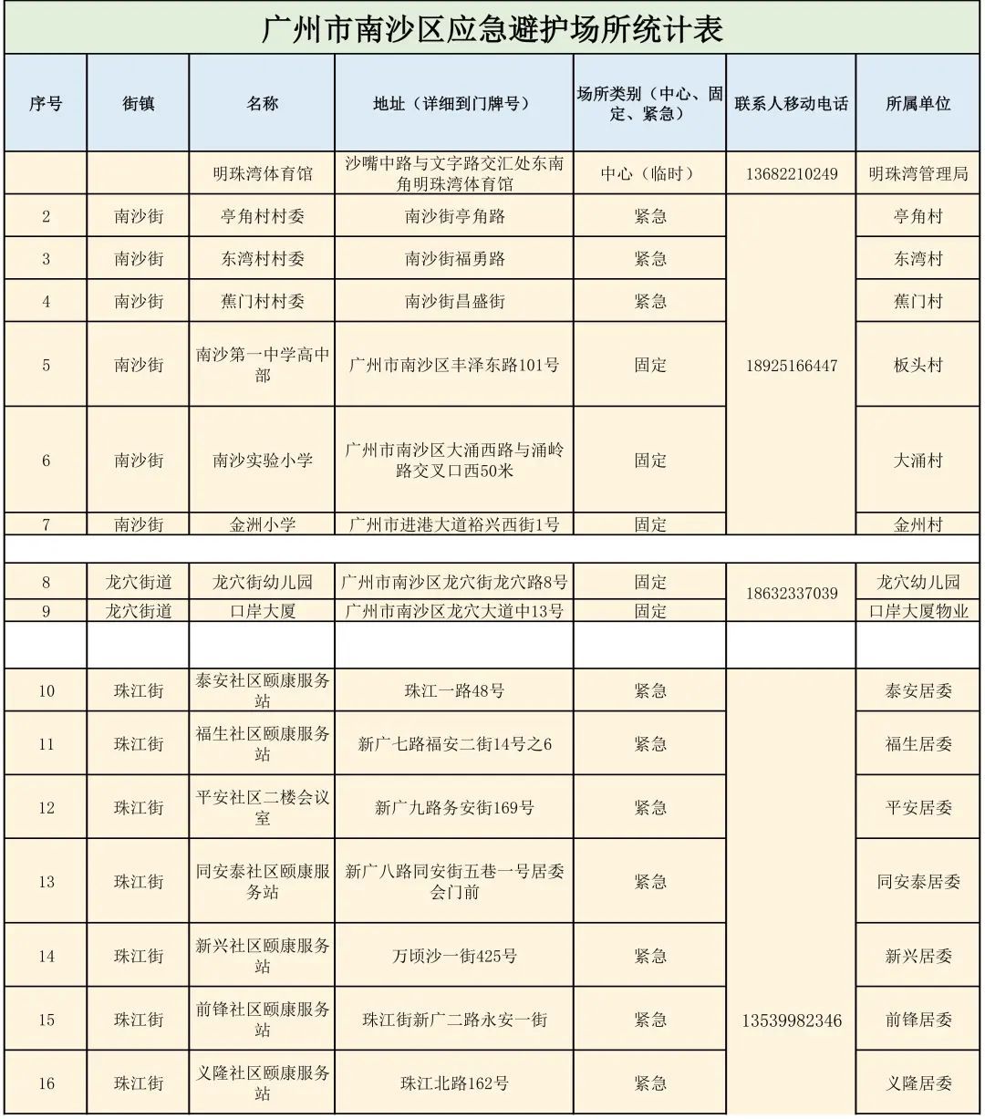 有需要时可查看下方的“广州南沙区应急避护场所统计表”