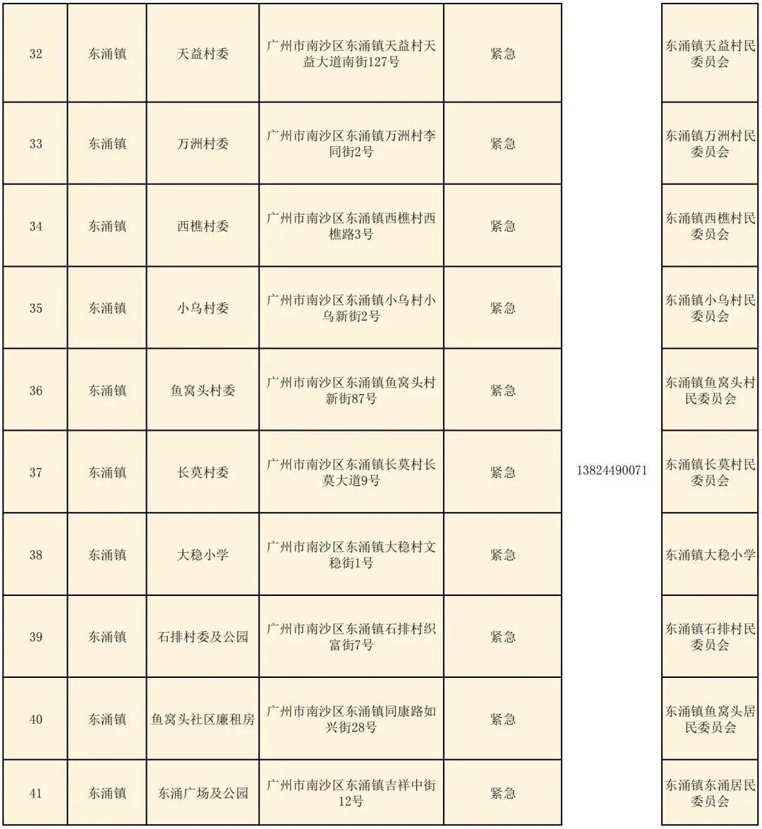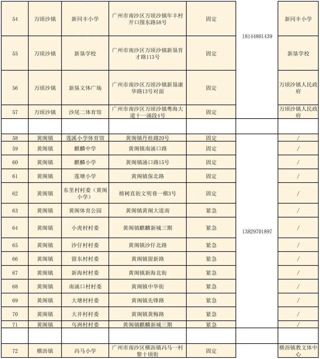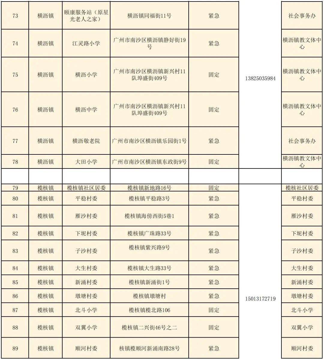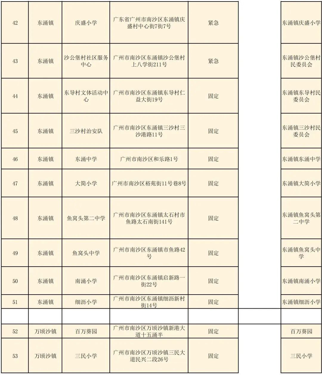 有需要时可查看下方的“广州南沙区应急避护场所统计表”