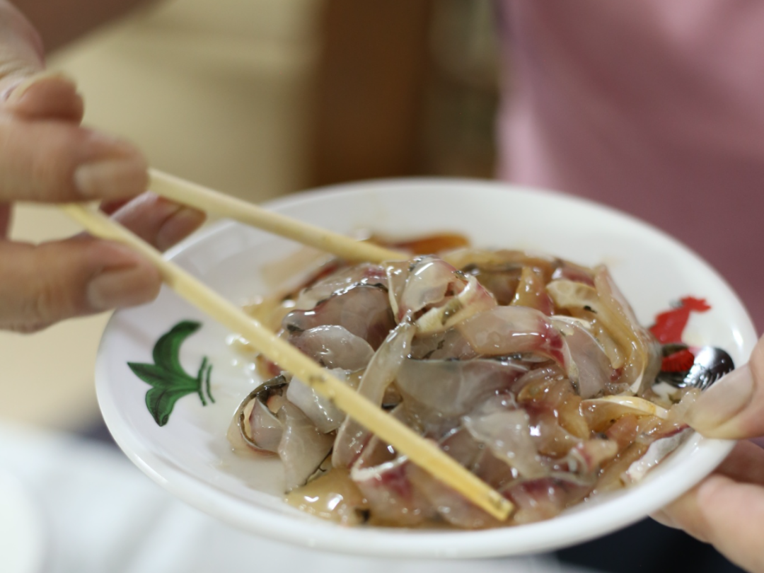 不得不说,老一辈南番顺人是懂吃鱼的。鲫鱼鲜美但刺多,为了尝尽鲫鱼的鲜美,他们把鲫鱼肉去骨起片后,以生滚的方式呈上,鱼骨另外清蒸,一鱼两吃。如此极致的做法,离开南番顺恐怕便难寻。