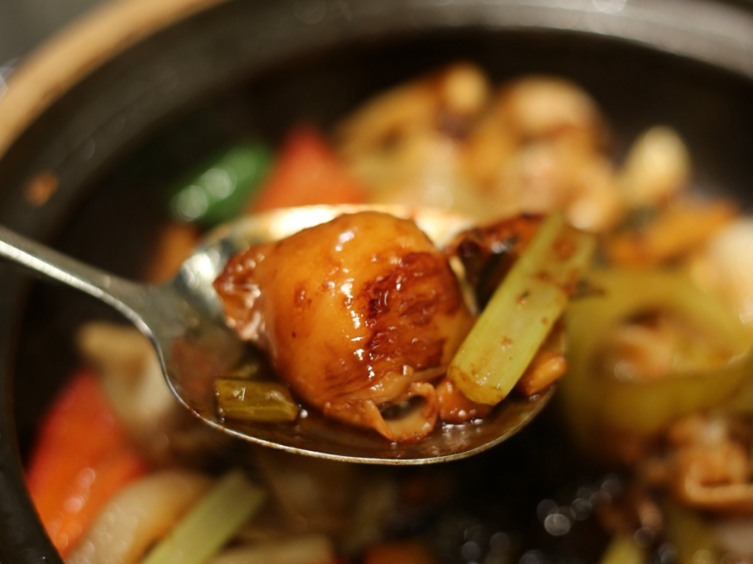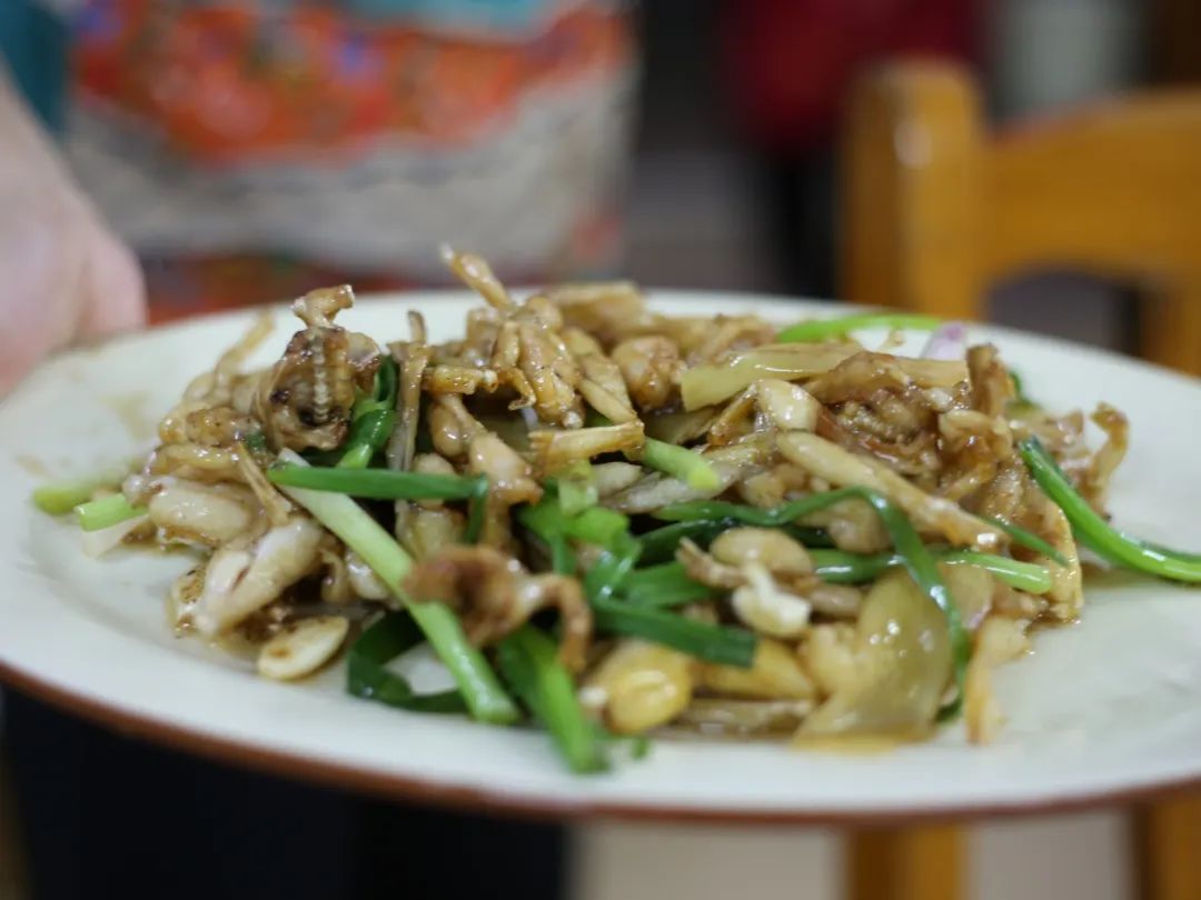 青养是广东地区常见的蛙类,身形较田鸡窄长,皮肤呈金黄色,没有田鸡的斑点,较牛蛙鲜美得多,但价格也要贵得多。虽然有人说青养贵且肉少,但爱吃的人就图那一口“鲜”味。以猛油爆香的青养,鲜味紧锁其中,就连姜葱也格外惹味。