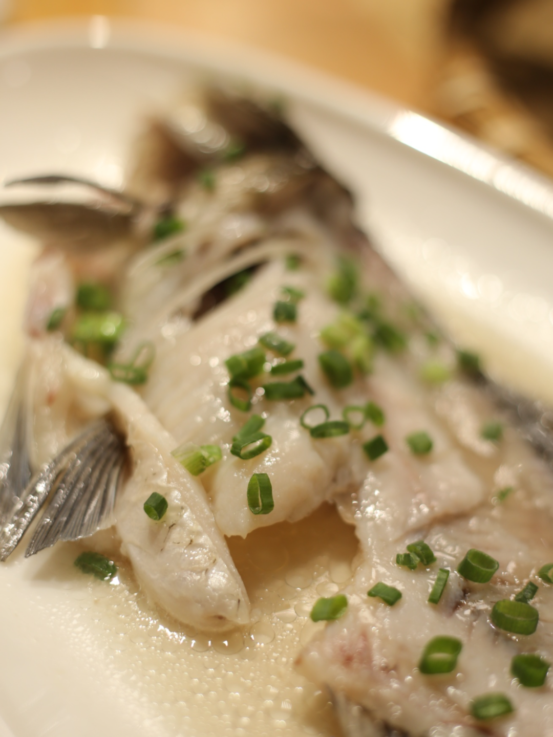 不同于鲩鱼和大头鱼,鲫鱼骨架小,无法做成煎焗骨腩。为了不浪费鲫鱼的每一啖鲜甜,师傅以油盐蒸之,鲜甜得让人连鱼头和鱼尾都不愿舍弃。