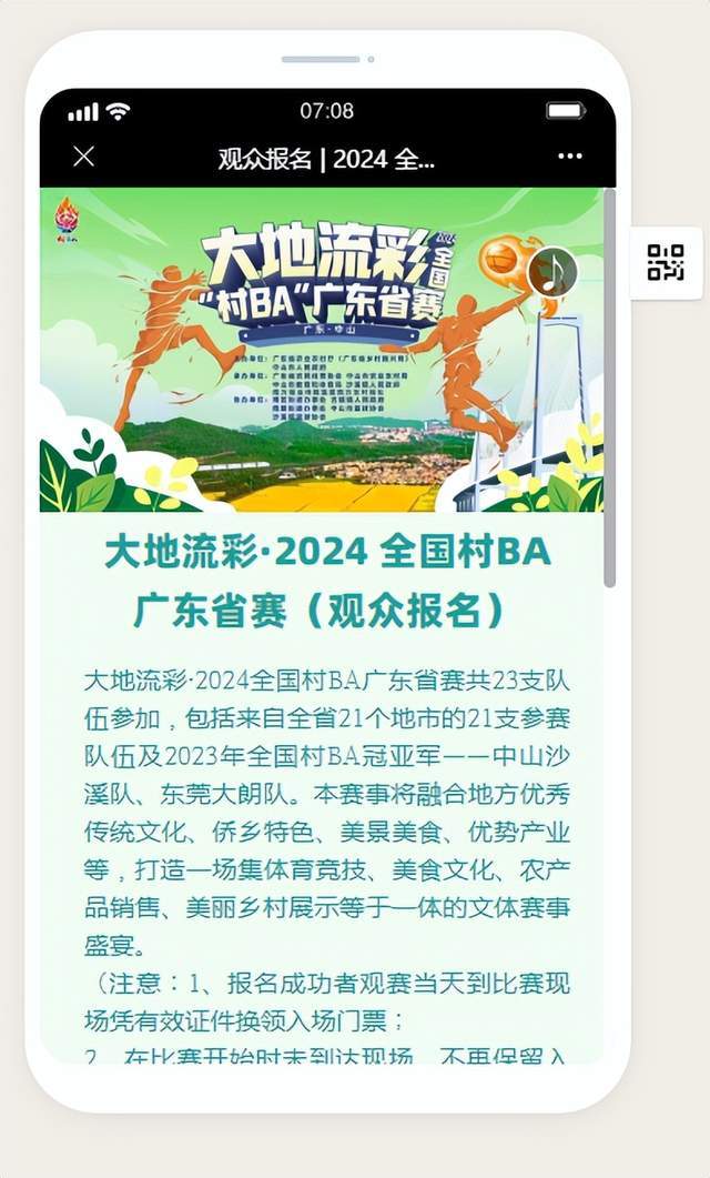 1.扫描二维码,进入“观众报名|2024全国村BA广东省赛”通道。