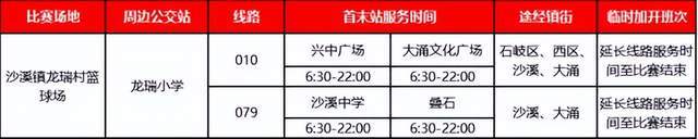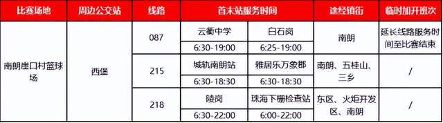 为了方便球迷出行,中山市公交集团有限公司于2024年9月8日-15日比赛期间,重点加密沙溪镇龙瑞村篮球场、南区北台村篮球场、古镇镇苏炳添体育馆、南朗崖口村篮球场周边,010、079、014、051、206、211、202、351、383、398、K01、K05、087、215、218路等15条公交线路服务班次。