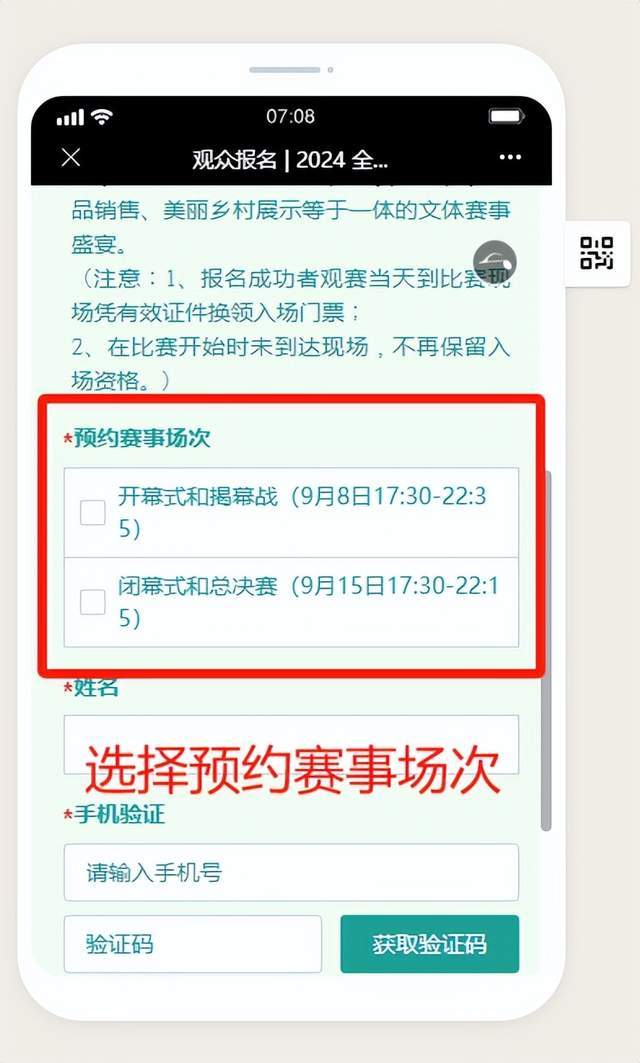 2.进入报名主界面,选择预约赛事场次。