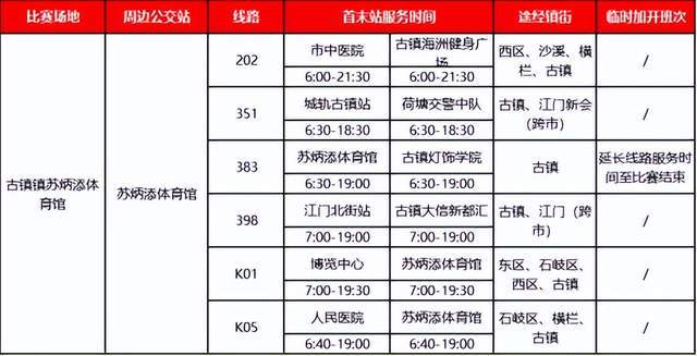 此外,为方便大家现场观赛,中山市公交集团有限公司在9月8日-15日比赛期间,对各比赛场地周边途经的公交线路班次进行加密,延长部分线路服务时间。