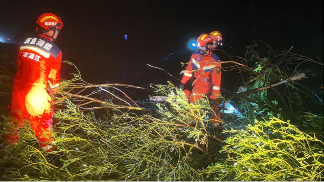 受台风影响,不少树木被刮倒,“消防橙”为受困群众开辟平安路。9月6日23时40分许,徐闻县南华农场有孕妇羊水已破,急需送医,但救护车遇大量路障无法前进,情况危急。徐闻县消防救援大队接警后,派出1车7人赶赴现场处置。