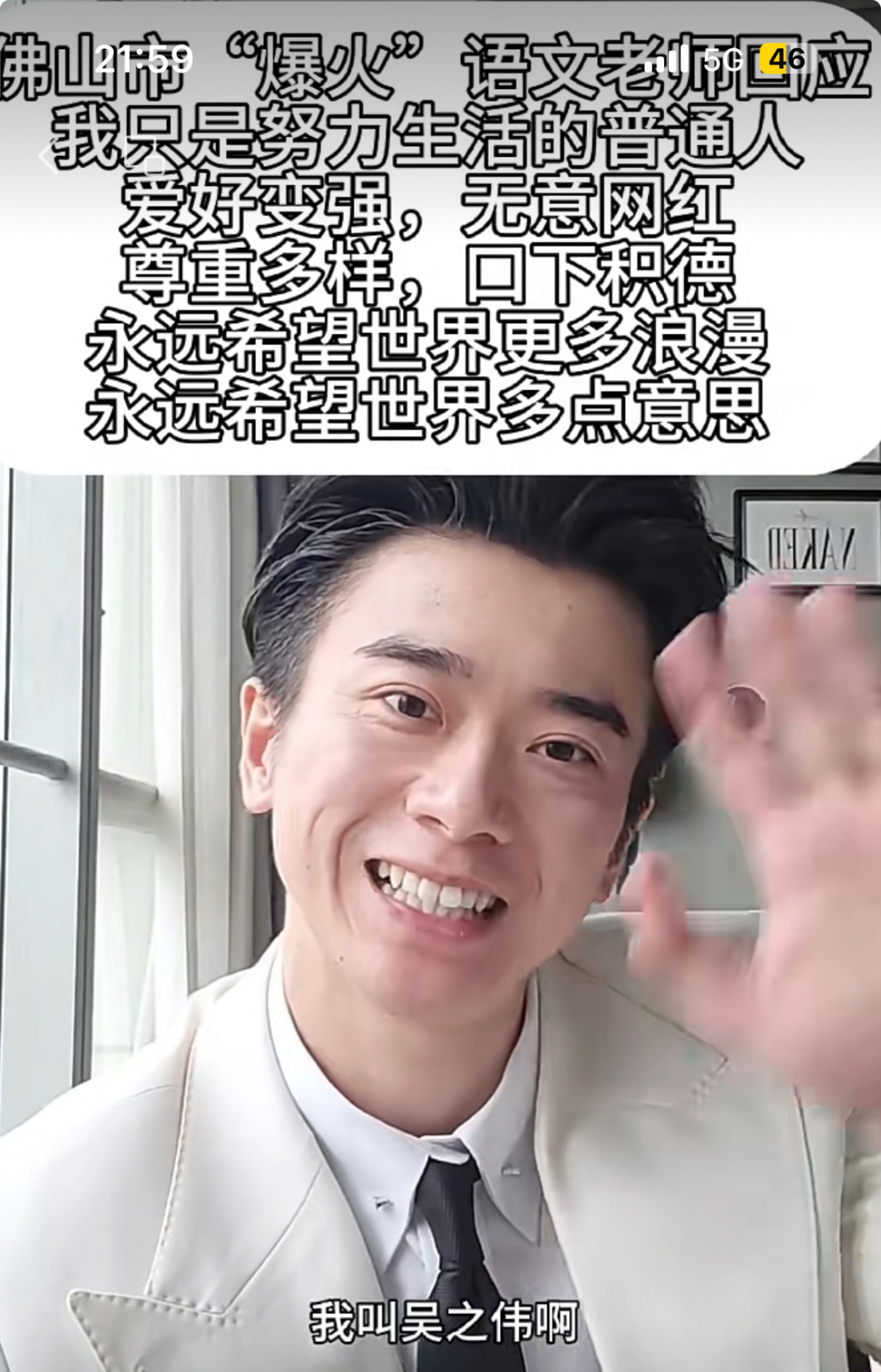 八块腹肌+男神颜值,他不是模特,是语文老师!连日来,因较大的反差形象,佛山市顺德区京师励耘实验学校新晋语文老师吴之伟在社交网络上“爆火”而被广泛关注。(详情阅读:八块腹肌+男神颜值,佛山这教师太火了!)面对巨大的流量席卷而来,也让吴之伟感到“头疼”。今日,吴之伟通过自己的社交网络平台,对其“爆火”之后社会上出现的一些“声音”进行逐一回复。