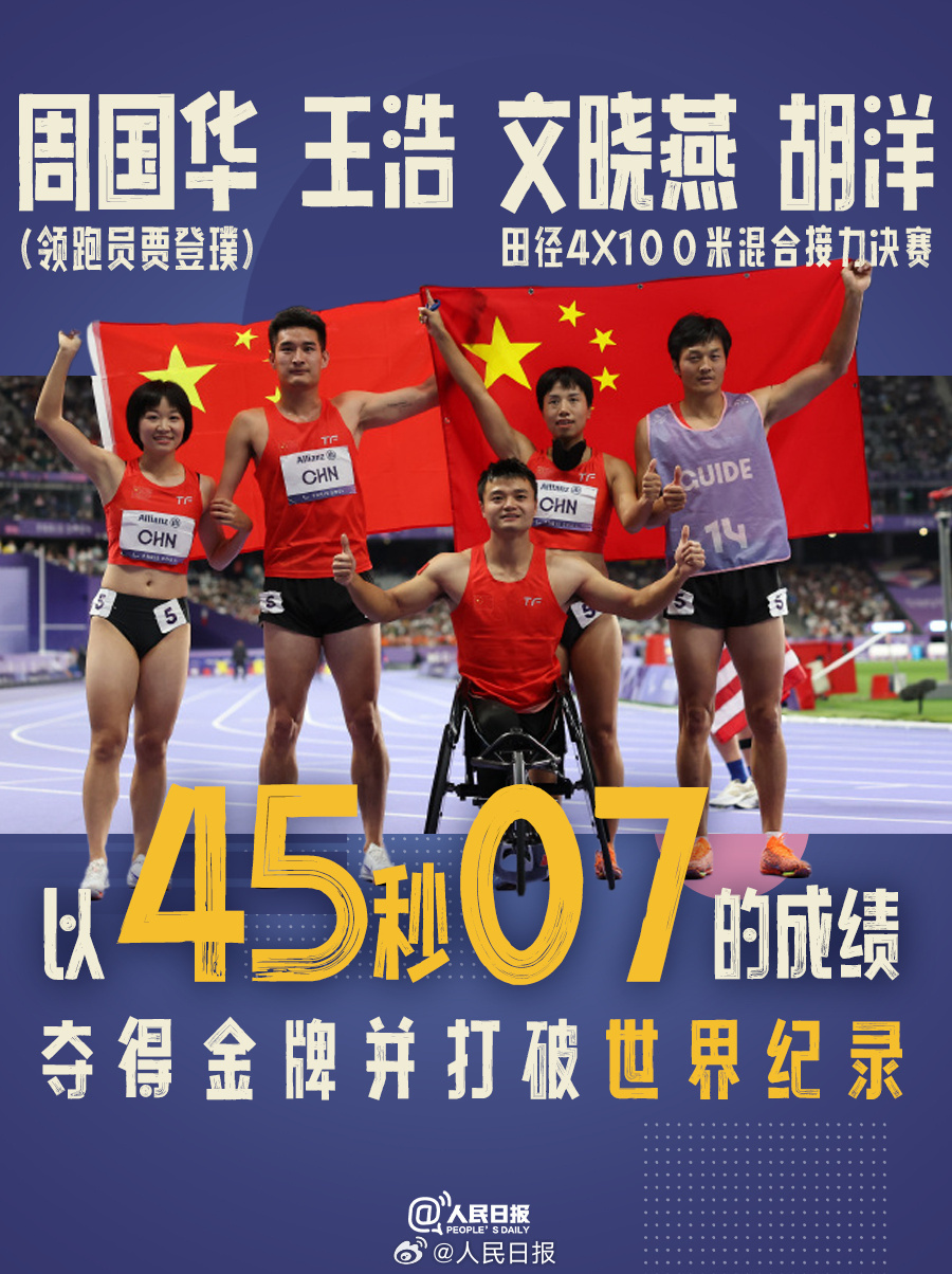 1分09秒68、6.85米、3分41秒692、123公斤……这些数字,都是中国队在残奥赛场上打破的世界纪录。巴黎残奥即将闭幕,中国队好样的,为你们骄傲!