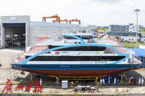 香港新渡轮400客位纯电池动力推进客渡船“新明珠39”号在广州南沙成功下水。