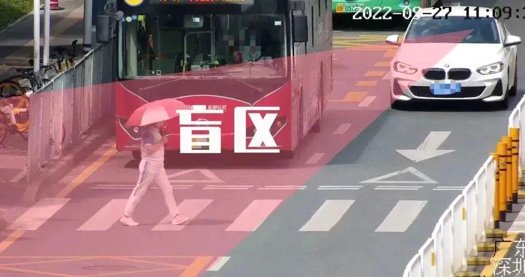 无论是大型车辆还是小型车辆,都会存在视线盲区。遇转弯时一定要左右转头、留心查看,减慢车速。