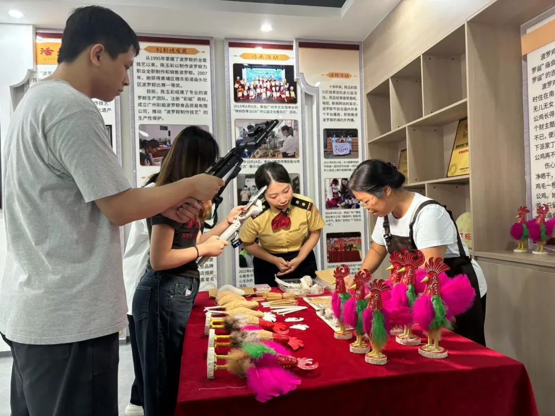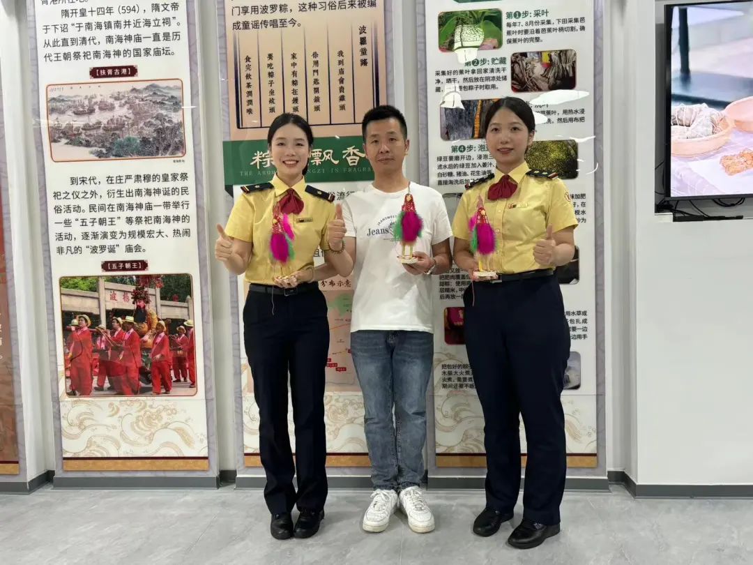 如今,坐落在南海神庙游客中心旁的穗东街道非遗传承工作室建成的运营面积约300平方米,分别设置了非遗制作展示区、非遗传承教学区、游客休闲区、非遗制作后勤区等系列功能区,形成了“生产+展示+体验+培训+研发+交流”一体化模式。系统化、全面性地发挥出非遗传承基地孵化作用,以“看得见、摸得着、吃得到”的形式,全方位展示非遗产品,便于群众体验传承非遗。下一步,穗东街道非遗传承工作室将联合更多资源,继续完善制定“波罗粽”的地方标准,建立标准化的生产体系,让波罗粽的文化一代又一代地传承下去。