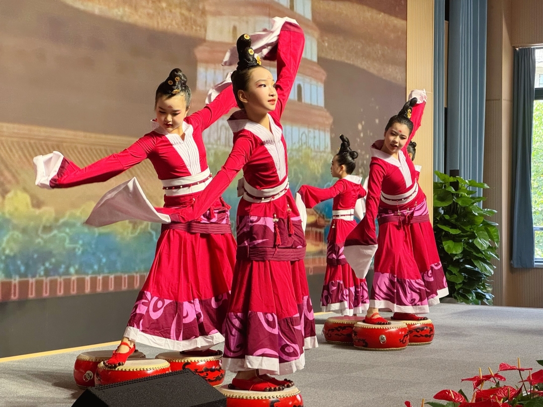 随着国歌声响起,揭牌仪式在庄严而热烈的氛围中拉开序幕。紧接着,学生代表们带来了精彩的表演《相和歌》。歌声嘹亮,舞姿翩翩,他们用才艺与热情,展现了汇景学子的青春活力与无限可能。