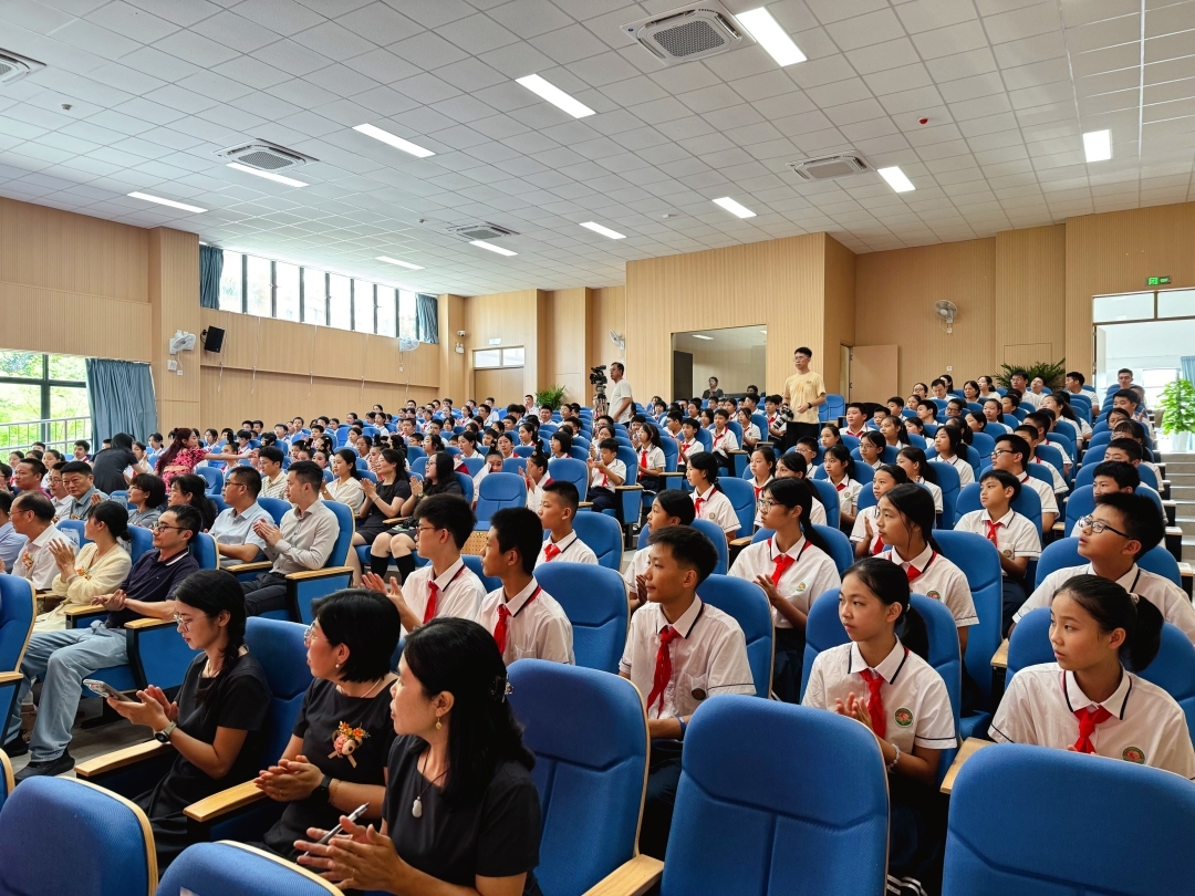 广州市天河区汇景实验学校党委书记黄雯介绍,作为九年一贯制学校,汇景实验学校致力于中小学一体化建设的研究,帮助学生在不同求学阶段之间平稳过渡,促进学生的全面发展。同时,学校不断完善课程体系,重点开发实施科创和非遗特色课程,培养学生的创新精神和实践能力,也引导学生传承和弘扬中华优秀传统文化。学校先后荣获全国青少年人工智能核心素养测评共建示范校、教育部乐高创新人才培养实践学校、全国青少年足球特色学校、腾讯“AI编程第一课”全国首批试点校。