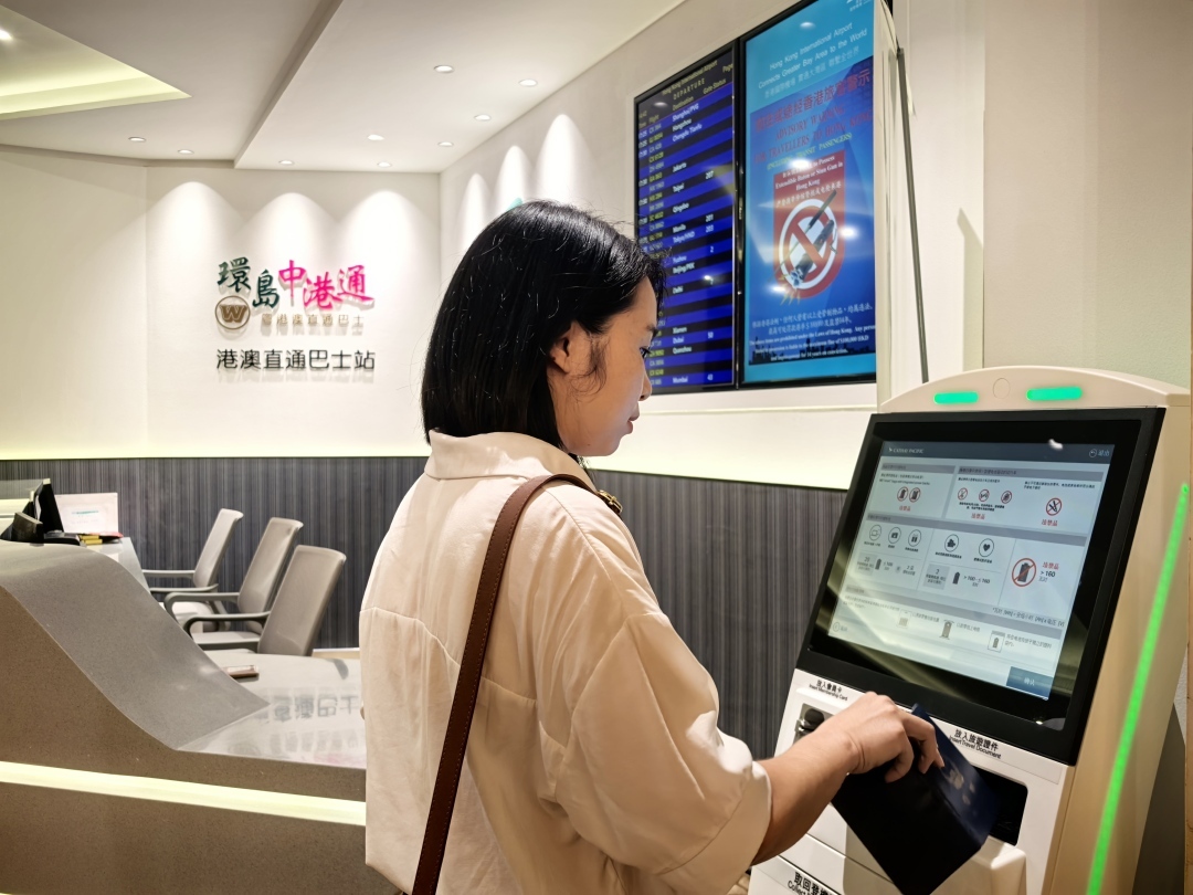 “去泰国会选择经香港飞,以前坐船过去或者坐车都要经过几次转乘,基本要花大半天时间。现在这里直接值机直达机场,非常方便。” 市民罗小姐抢先体验了现代化的服务柜台和自助值机设备,值机后兴高采烈地前往大巴等待出发。