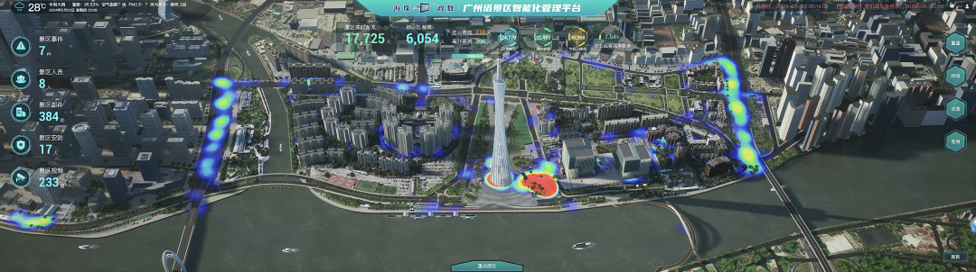 距广州塔114米开外,还有另一座“小蛮腰”,景区实时客流、24小时的客流趋势、人流热力分布图,在这座“小蛮腰”里一目了然;发生在景区内的非机动车乱停放、占道经营、乱摆卖、乱拉挂、垃圾乱堆放、躺卧凳椅等行为,在这座“小蛮腰”里无所遁形。这是广州塔的“数字孪生”——“智慧塔巡”广州塔片区智能化管理平台。