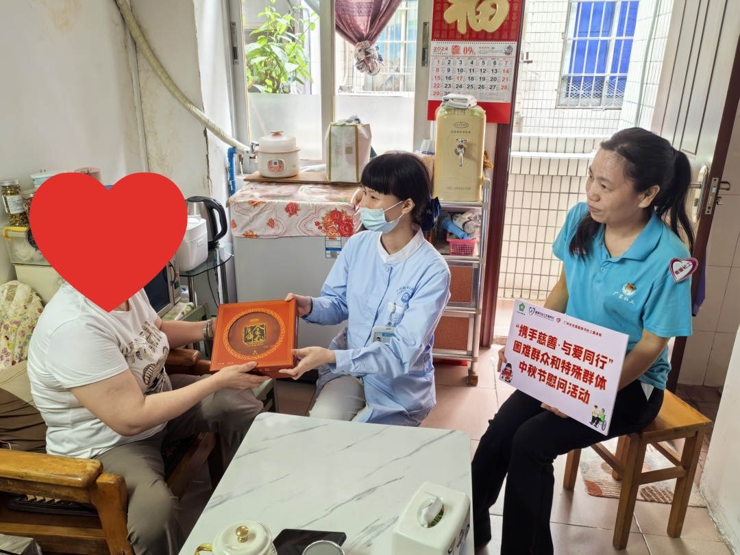 9月10日上午,在广州市越秀区光塔街道党工委的指导下,光塔街道公共卫生委员会、中共广州市越秀区光塔街诗书社工服务站支部、中共光塔街陶家巷社区委员会、中共光塔街福地巷社区委员会、中共广州市南粤医药研究所门诊部支部、中共中联国际房地产土地资产评估咨询(广东)有限公司支部、中共广州市消防救援支队解放路站支部委员会、中共广州飞虹半导体科技有限公司支部、中共广州市普爱社会工作服务社支部、广州普瑞眼科医院、优研健康发展(广州)有限公司开展“携手慈善·与爱同行”困难群众和特殊群体中秋节慰问活动,提升困难群众与特殊群体的生活质量,提升居民健康水平,努力为他们打造一个健康、安全、和谐的高质量美好生活环境,让其充分感受中秋节日的气氛,着力营造全社会关爱困难群众和特殊群体的浓厚氛围。