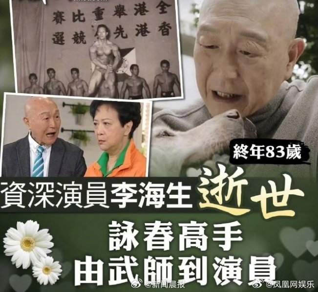 9月10日,据港媒报道,香港资深演员李海生因皮肤生毒疮,导致背脊溃烂,引发细菌感染,昨日(9日)在医院病逝,终年83岁。