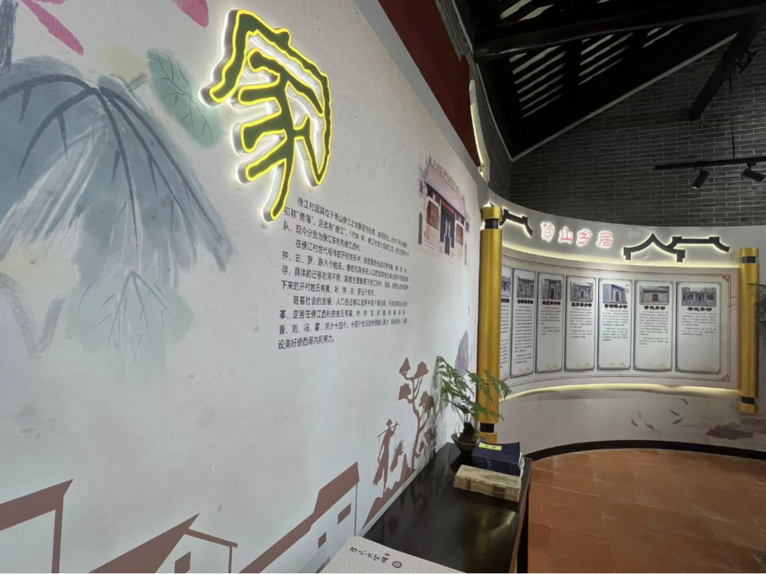 据了解,傍江西村史馆建筑面积约200平方米,村史馆由乡音墙、乡土厅、宗族厅、会客厅、龙庆堂、乡俗厅、乡情园、愿景厅等组成、馆内通过文字、图片、视频、旧物、模型等形式,详细展示了傍江西村历史沿革、经济发展、生活变迁、民俗风情、传统文化等方面的内容。