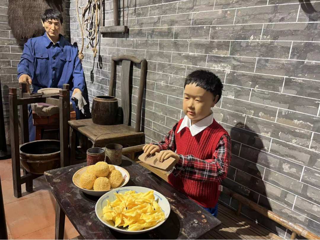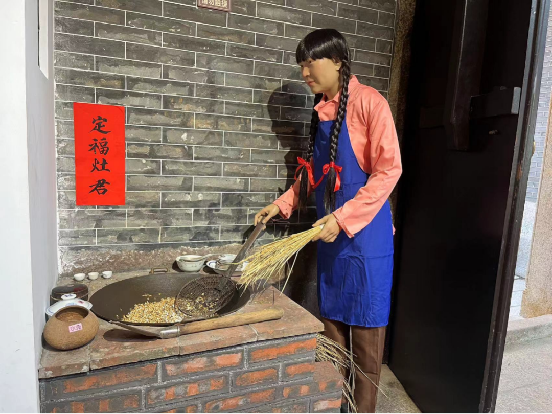此外,展馆还展示了梳妆台、缝衣机、晒物架、煤油灯、农具、黑白电视、收音机等数十件老旧物品,以及农耕、制作煎堆油角、婚庆喜宴等场景。据了解,其中,不少“老古董”都是由村民提供。