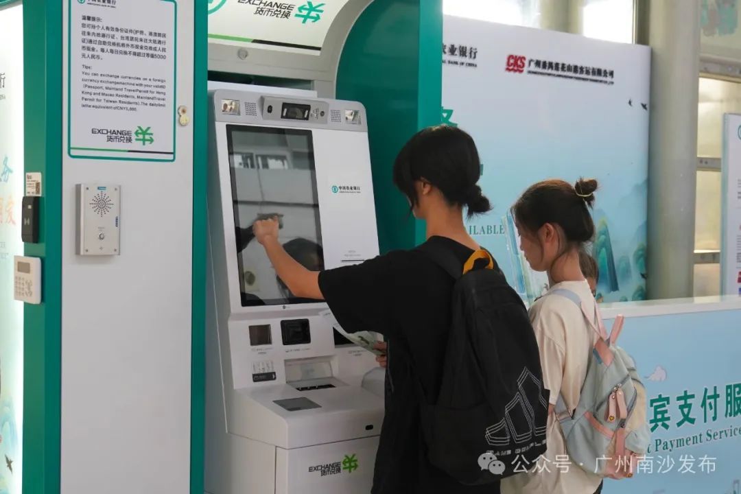四是外汇兑换便捷。位于南沙客运港的外币自助兑换机支持美元、英镑、欧元等8种货币实时兑换并存入硬钱包,使境外人士能够更方便地兑换本国货币在我国进行消费。