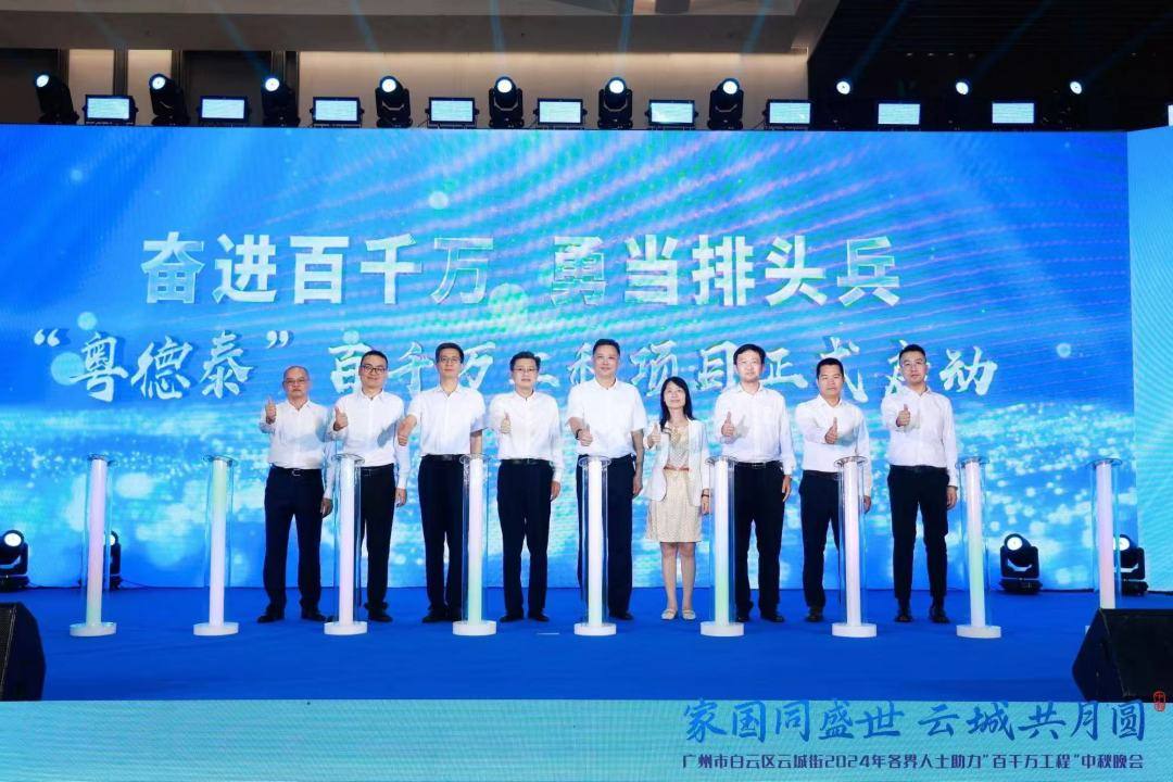 中秋佳节即将来临,9月10日晚,在广州市白云区“百千万工程”指挥部办公室的指导以及云城商会的支持下,白云区云城街在广州白云国际会议中心国际会堂举办了2024年各界人士助力“百千万工程”中秋晚会。活动现场,“粤德泰”项目正式启动,将通过市场化运作,实现“造血”推动乡村可持续发展,厚植高质量发展新动能新优势。